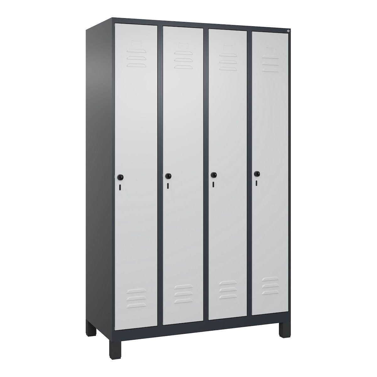C+P Spind Classic PLUS, Füßen, 4 Abteile, HxBxT 195x120x50cm, Sicherheitsdrehriegel, Anthrazit/Hellgrau von PROREGAL