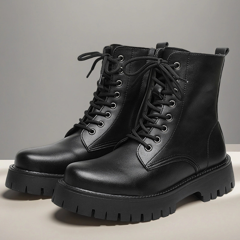 Black Faux Leather Men's High-Top Boots with Winged Pattern, Lace-Up Closure, and Rugged Sole – Ideal for Harley Riders, Punk Style Enthusiasts, Casual Outings and Everyday Wear