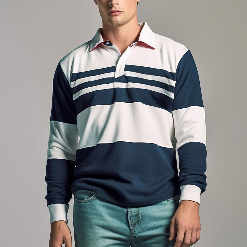 Men's Striped Rugby Polo Shirts Long Sleeve Polo Shirts Zip Casual Outdoor Casual Daily Streetwear 3D Print Fall Winter Navy Blue Green Dark Blue