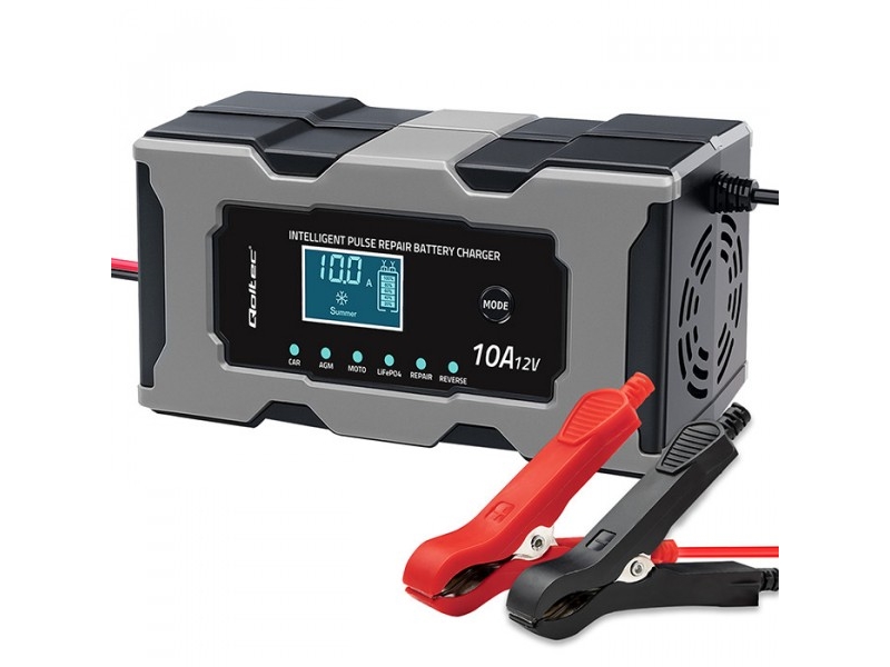 Qoltec intelligentes mikroprozessorgesteuertes Ladegerät 12V 10A | Gleichrichter mit Reparaturfunktion für AGM GEL LiFePO4 Akku | LCD