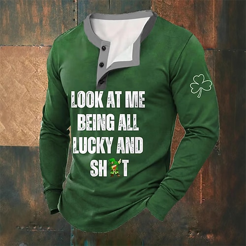 Giorno di San Patrizio San Patrizio Festa di San Patrizio Per uomo Trifoglio Citazioni Detti Maglietta Maglia Henley Manica Lunga maglietta Stampa 3D Henley Camicia Sport Moda Designer Quotidiano