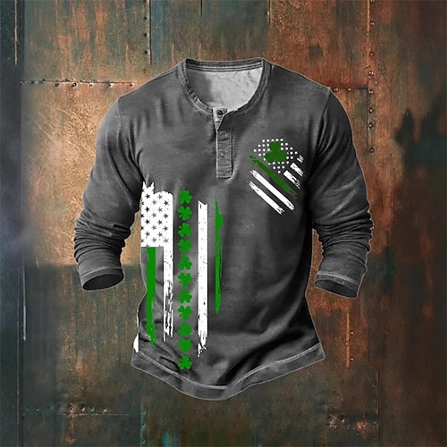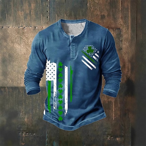 Giorno di San Patrizio San Patrizio Festa di San Patrizio Per uomo Trifoglio Maglietta Maglia Henley Manica Lunga maglietta Stampa 3D Henley Camicia Sport Moda Designer Quotidiano Vacanza Feste Blu