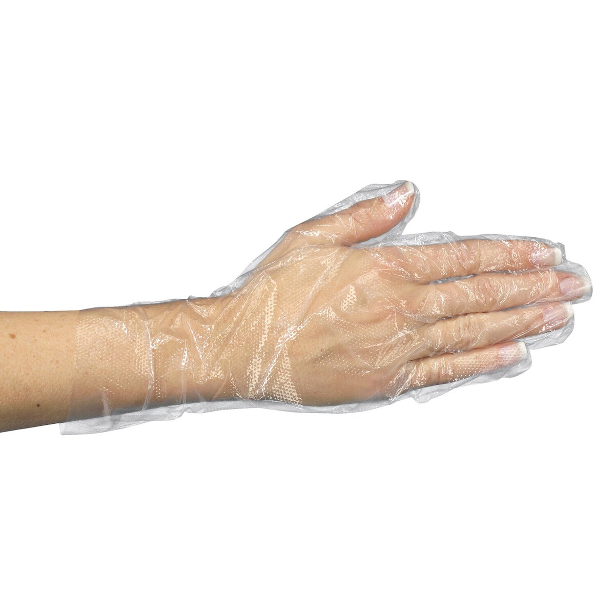 Papstar 500x Einweghandschuhe aus PE transparent gehämmert in Spenderkarton Größe M