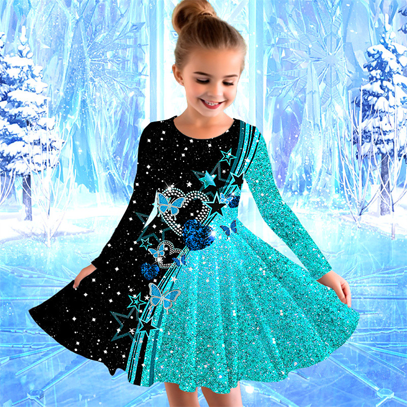 Girls' 3D Butterfly Dress Long Sleeve 3D Print Fall Winter Vacation Sports Outdoor Daily Cute Casual Beautiful Kids 3-12 Years Casual Dress A Line Dress Above Knee Regular Fit