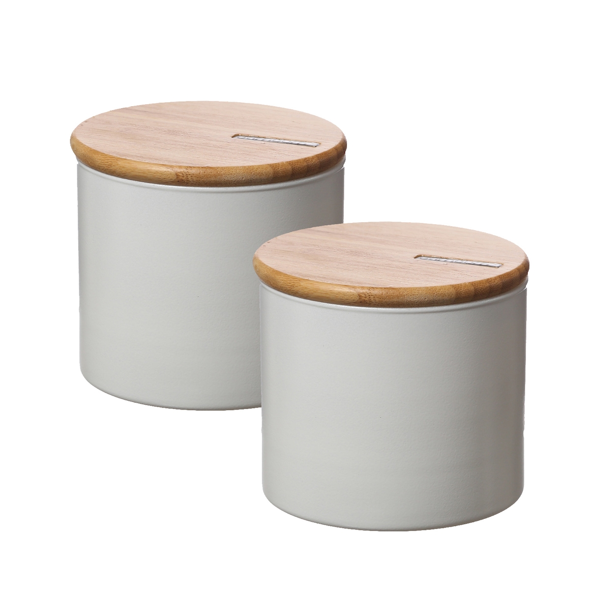 Vorratsdose CONTINENTA, weiß, B:10cm H:14,5cm, Lebensmittelaufbewahrungsbehälter, Vorratsdose, Keramik, mit Holzdeckel, luftdicht zum Verschließen