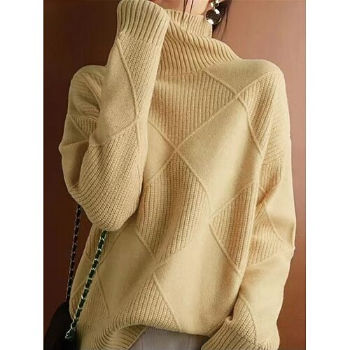 Per donna Felpa Pullover Maglione Informale Morbido Colore puro Cavi A collo alto Lavorato a maglia Manica lunga Top regolari Maglia Esterno Giornaliero Fine settimana Vino Albicocca Autunno Inverno