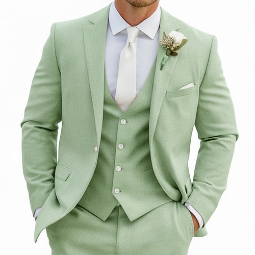 Uomo Matrimonio primaverile Matrimonio in Spiaggia Abiti da sposo Bavero classico Bianco Verde chiaro Quotidiano Festa Tinta unita Vestibilità aderente 3 pezzi Monopetto a un bottone