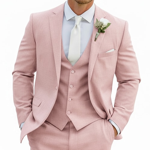 Uomo Casuale Matrimonio primaverile Abiti da sposo Bavero classico Borgogna Quotidiano Formale Tinta unita Vestibilità aderente 3 pezzi Monopetto a un bottone