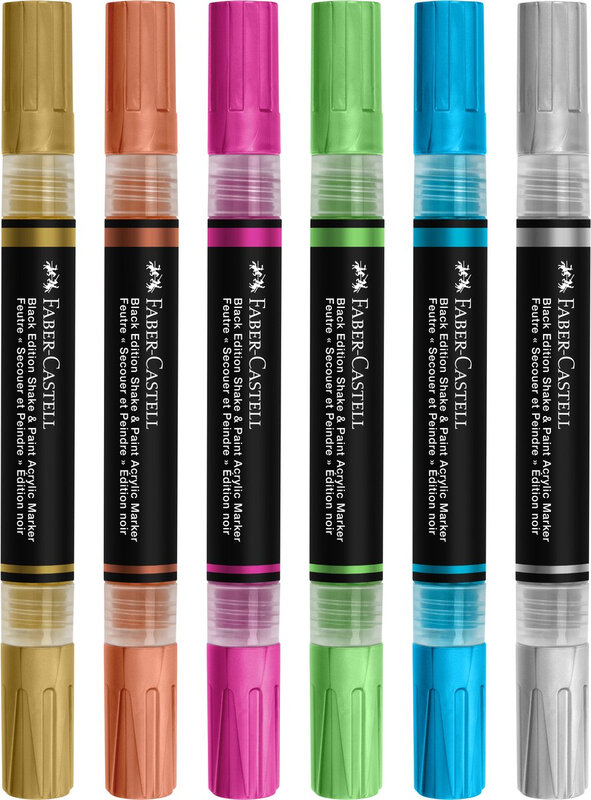 Faber-Castell Acrylic Marker Black Edition Shake & Paint 6 stuks metallic colors