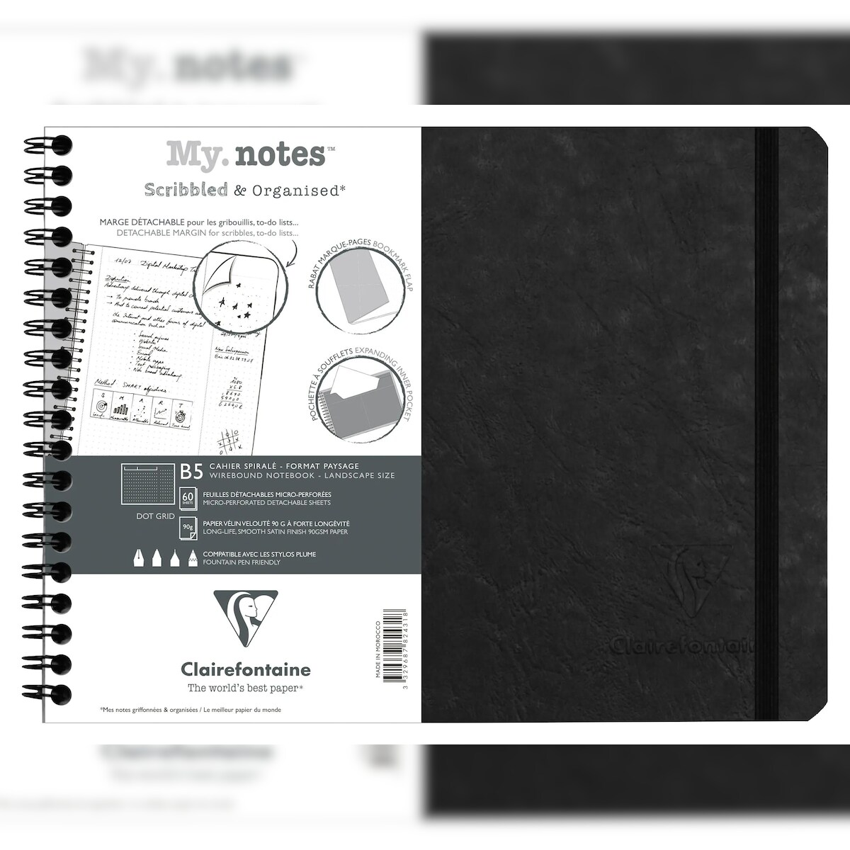 Clairefontaine 5x My.Notes Age Bag, Spiralheft B5 Querformat, 60 Blatt 90g, DOT mit Kopfleiste, abtrennbar, mikroperforiert - Tabak 782431C