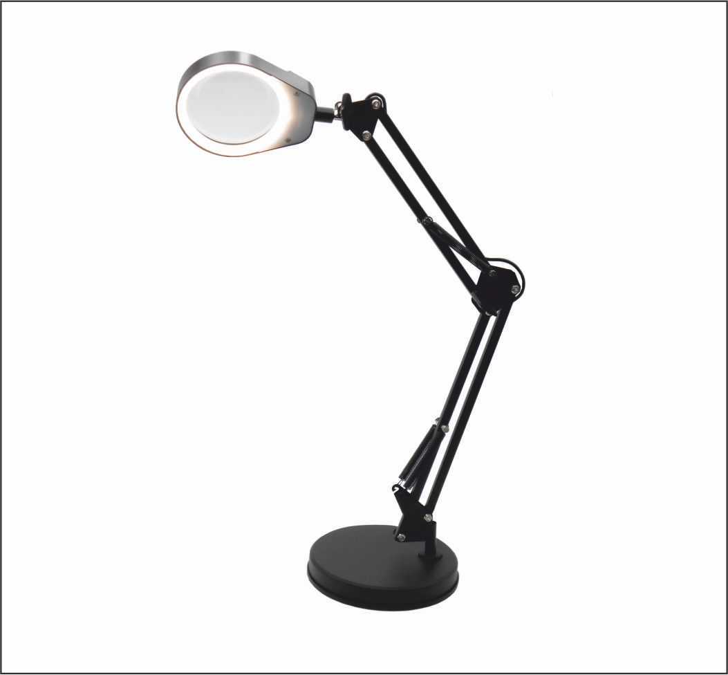 Papuq LED-Lampe mit Vergrößerungslupe X5 Ø95mm schwarz, Licht regulierbar in 3 Stufen, Schwenkarm 60cm, stabile Basis und Metallklemme.