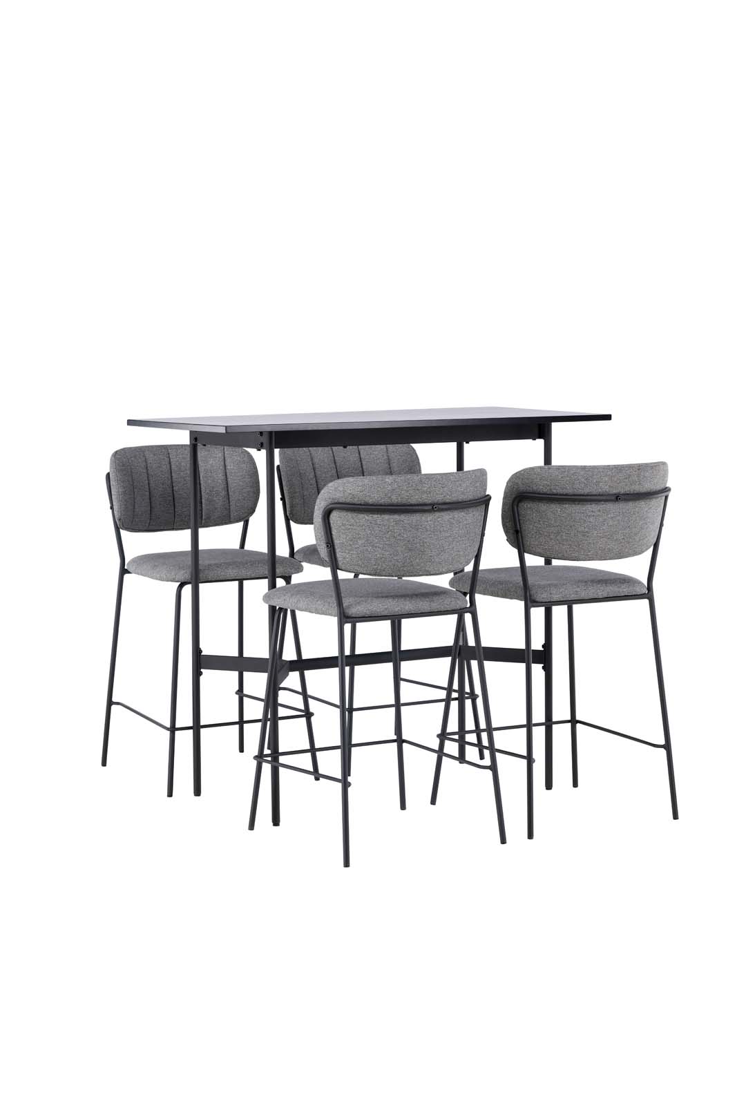 Rax Barmöbelsett Bartisch schwarz und 4 bell Barhocker grau.