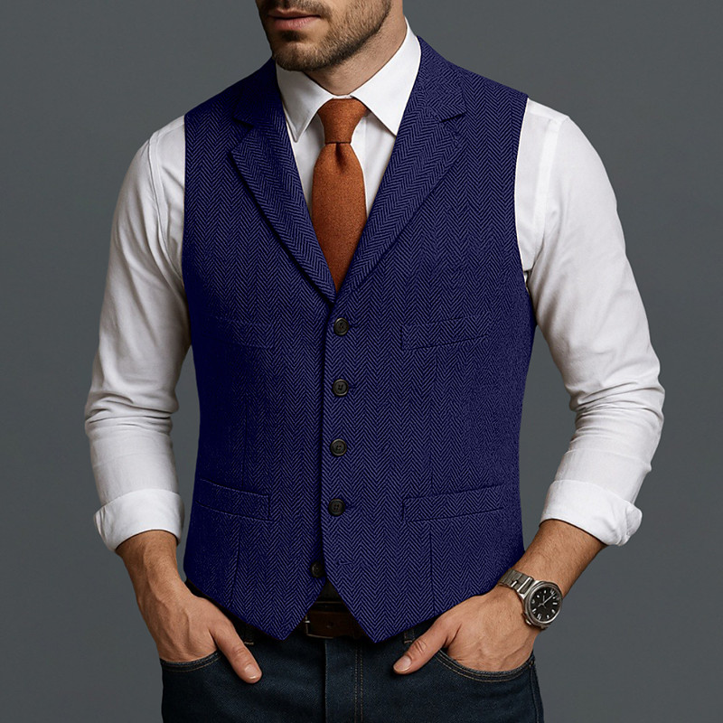 Men Vest Waistcoat Formal Wedding Christmas Vacation Fashion Classy Spring Fall Pocket Buttons Wool Acrylic Comfortable Plain Herringbone Single Breasted Lapel Regular Fit Black Champagne Red Burgundy