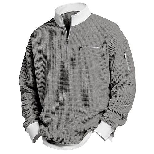 Per uomo Maglietta Waffle Maglietta Manica Lunga Mezza zip Primavera Autunno Inverno Tinta unica Tradizionale / Vintage Casual Blocco di colore Tasca con cerniera All'aperto Casa Sport Outdoor