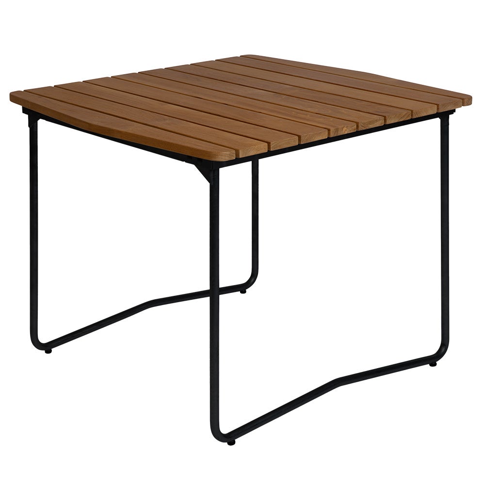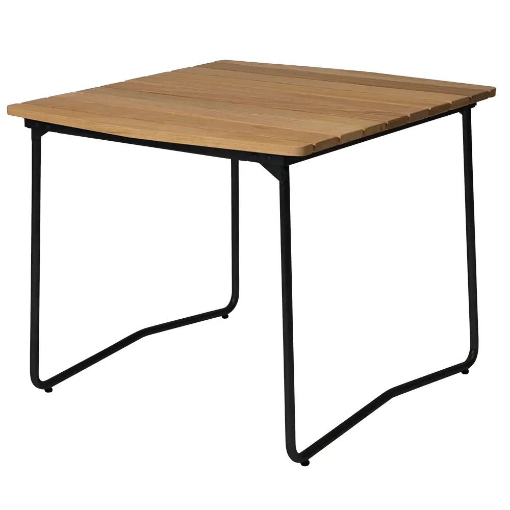 Grythyttan Stålmöbler - Bord B31 84cm svart stativ obehandlad teak - Matbord utomhus