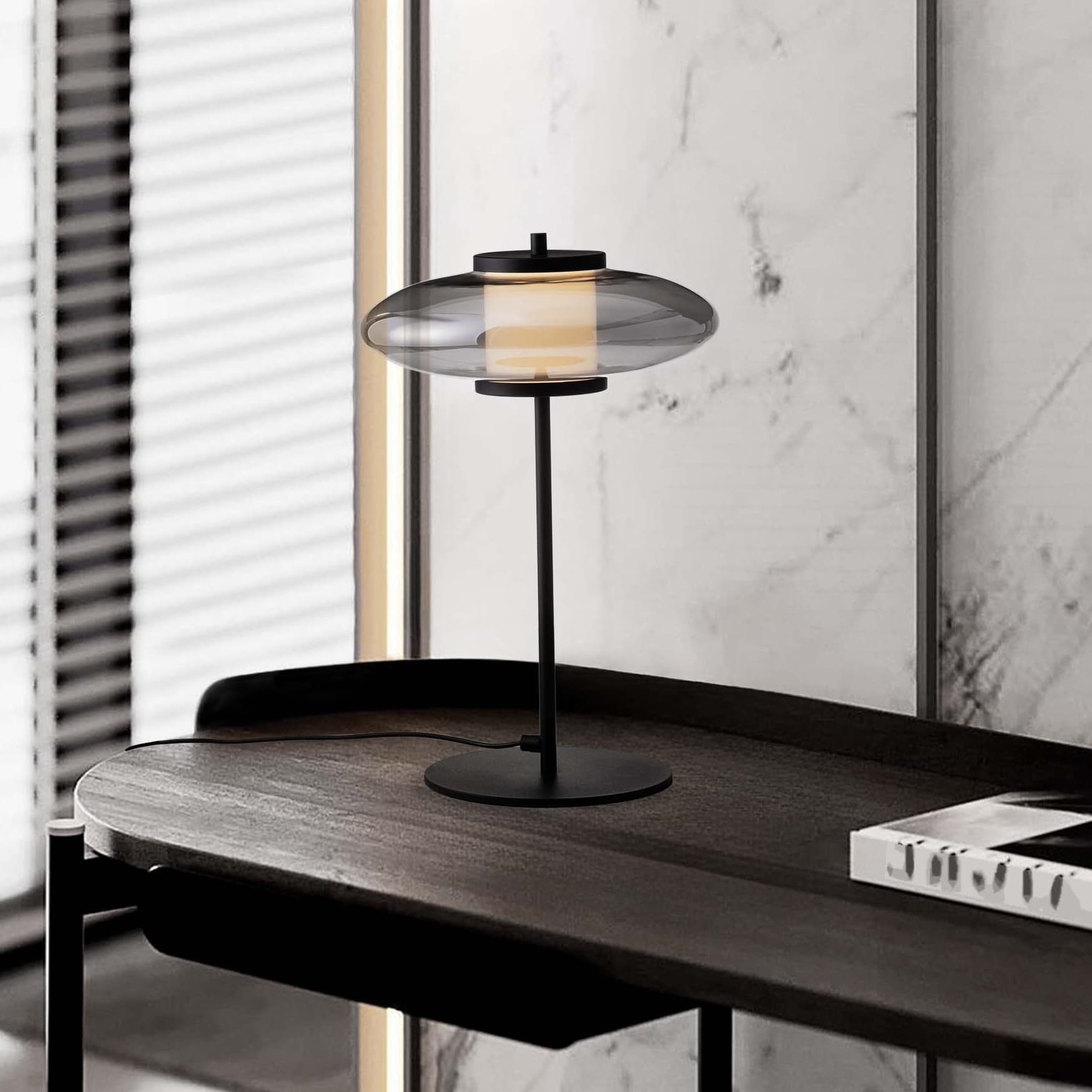 Nova Luce Ballet - lampe de table - Ø 26 x 40 cm - 8W dimmable LED inclus - noir sablé et gris fumé