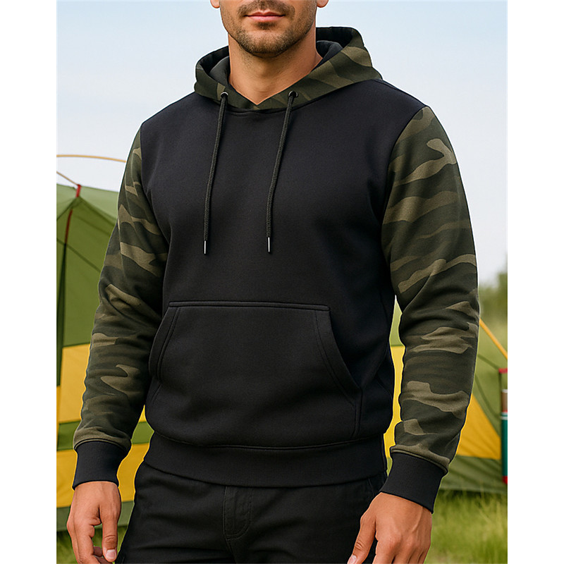 Men's Hoodie Hiking Sweatshirt Hiking top Long Sleeve Hooded Top Outdoor Lightweight Elastic Breathable Pullover Polyester Camo Black Army Green Khaki Tennis Golf Running