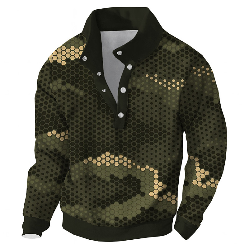 Men's Camo Camouflage Sweatshirt Military Hunting Long Sleeve High Neck Outdoor Hunting Blue Green Gray Buttons Fall Winter Designer S M L XL XXL 3XL