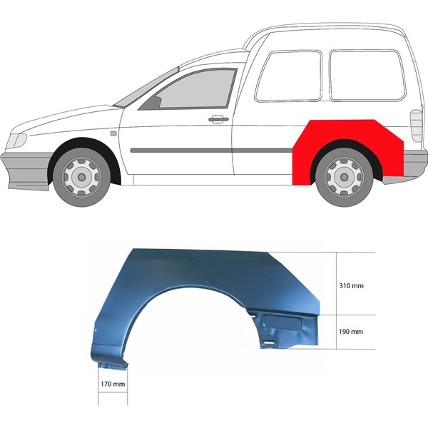Kylkipaneli, Taakse, vasen Klokkerholm 9570591 - vw caddy minibus, minivan ii, caddy skåp/stor limousine ii