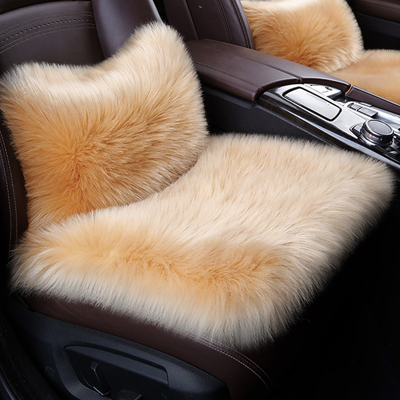 Car Seat Cushion Fur Covers, Fiber Faux Wool Mat, Long Plush, Universal Women's Warm Car Seat Cushion Winter