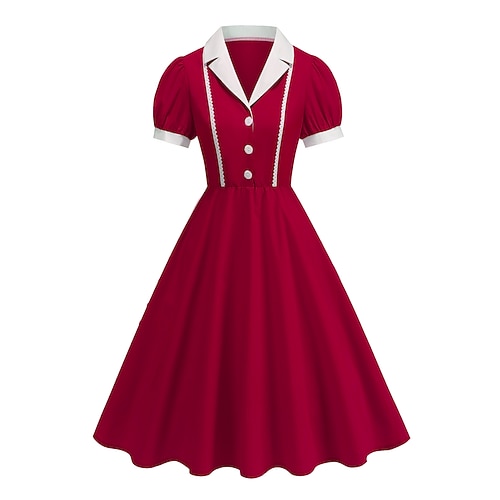 Elegante Classico Anni 1950 Midi Abito a Linea Abito Swing Vestito Svasato Maniche corte Linea ad A Costume Per donna Carnevale San Valentino Mascherata Vacanza Abbigliamento Quotidiano Addio al