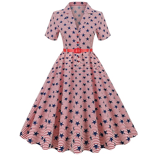Anni 1950 Americano 250 Retrò Vintage Midi Vestito Abito Swing Vestito Svasato Maniche corte Linea ad A Costume Per donna 4 Luglio Giorno dell'Indipendenza Semiquincentenario Adulti Vestito Abiti per