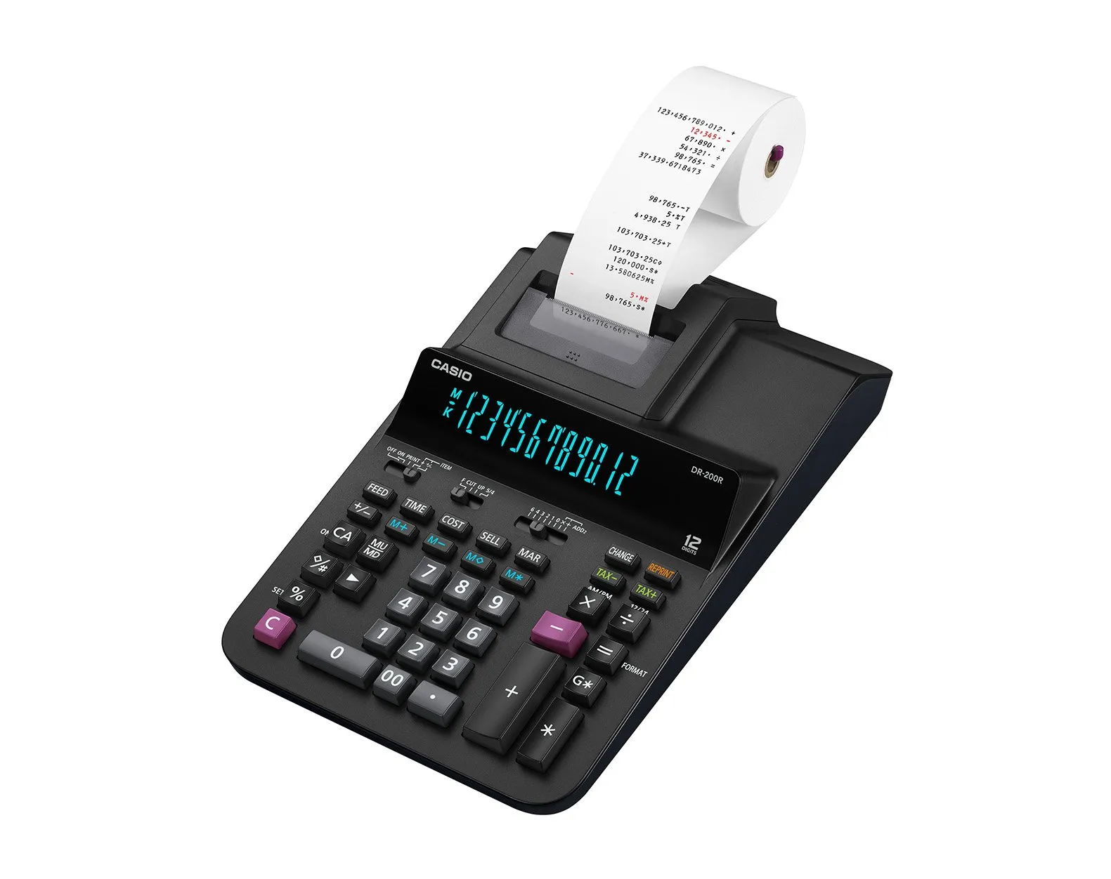 Casio DR-200R Black - 2 farvet print, reprint funktion, tax, 4,4 lin/sek - ikke batteri/kun ledning.