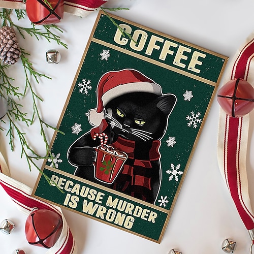 cartello natalizio in legno a forma di gatto nero da appendere, decorazione natalizia rettangolare a forma di gatto, cartello in legno stampato colorato per la stanza, arredamento per la casa o