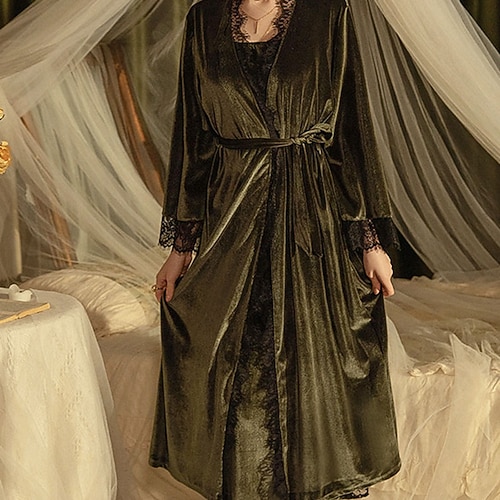 Per donna Pigiama Abbigliamento da Casa Caldo Moda Casual Colore Puro Arricciato Allacciato Patchwork Vacanza Casa Da letto Manica Lunga Scollo a V Blu Nero Vino Verde Inverno Vestibilità regolare