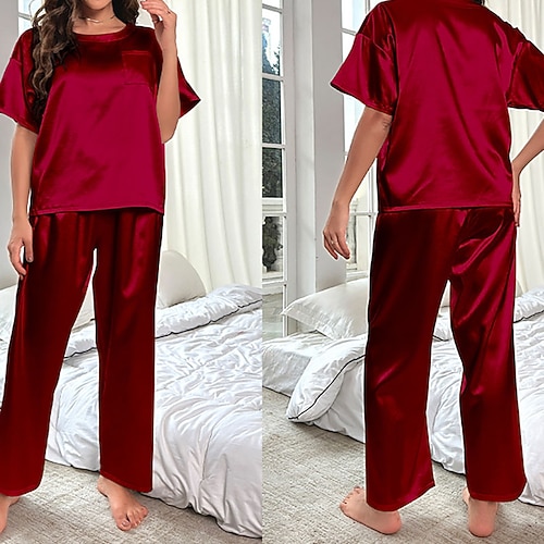 Per donna Abbigliamento da Casa Set Pigiama Moda Casual Morbido Colore Puro Patchwork Pantalone Casa Vacanza Manica Corta Girocollo Blu Nero Vino Viola Cachi Estate Primavera Autunno Vestibilit