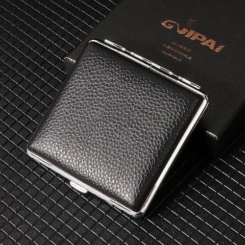 portasigarette in vera pelle premium, struttura in metallo, chiusura magnetica, design elegante per uomo, contiene 20 sigarette