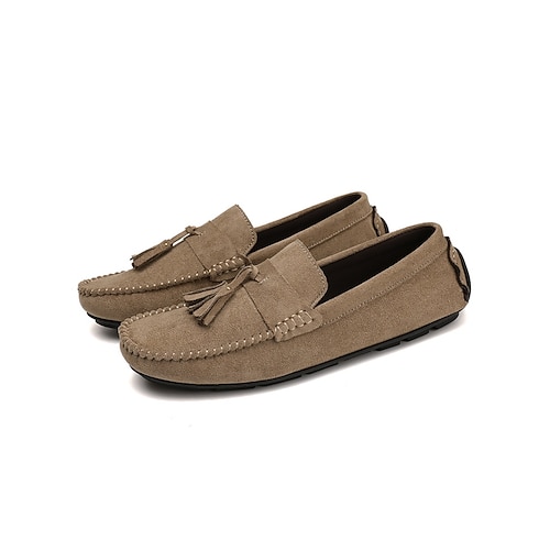 mocassini grigi da uomo, design classico slip-on, suola morbida e ammortizzata, stile casual e comodo per l'uso in resort e nelle avventure quotidiane