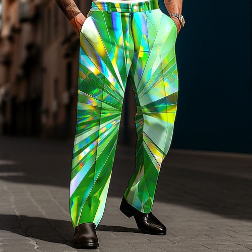 Per uomo Geometrico Illusione ottica Laser Pantaloni Eleganti Pantaloni Pantaloni da Abito Misura del girovita medio Casual Ferie Abbigliamento casual alla moda Pantaloni eleganti con vestibilit