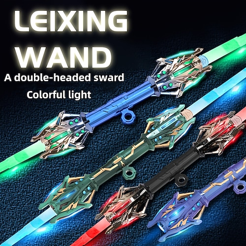 spada retrattile a doppia testa con luci e suoni cangianti colorati - luci a LED colorate con 7 cambi di colore, spada laser giocattolo rotante lampeggiante 2 in 1, regalo perfetto per i giocattoli