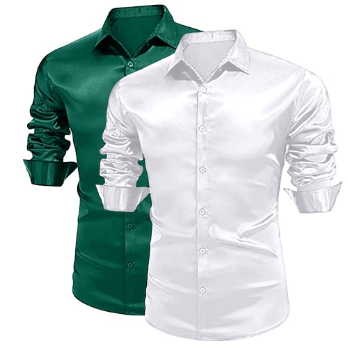 Per uomo Camicia Come la seta Camicia in raso Camicia elegante Camicia casual Camicia con Bottoni Semplice Formale Matrimonio Bianco Verde Verde rosso Bianco nero Bianco blu Manica Lunga