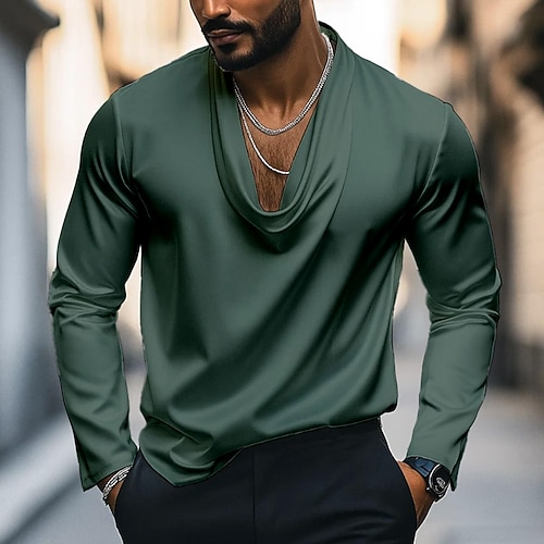 Per uomo Camicia Come la seta Camicia in raso Camicia casual Semplice Formale Matrimonio Nero Vino Blu marino Oro Manica Lunga Scollo a Cascata Primavera Autunno Tutte le stagioni Abbigliamento