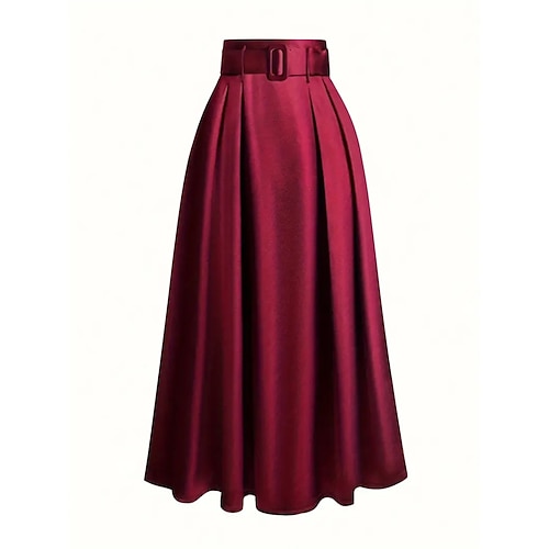 Per donna Gonna Moda Maxi Vita Alta Gonne Semplice Pieghettato Micro-elastico Quotidiano Data Vinaccia Nero Rosa Verde scuro Primavera Seta come il raso Poliestere