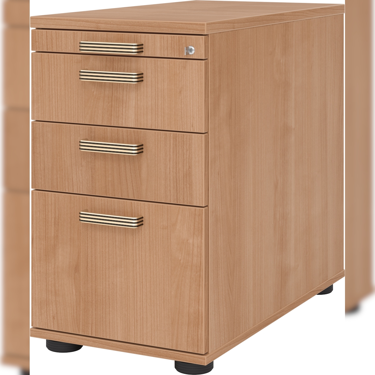 bümö Schreibtisch Schrank Büro mit Hängeregister für Hängeordner, Schubladenschrank Holz in Nussbaum, Container mit Schubladen & Hängeregistratur -