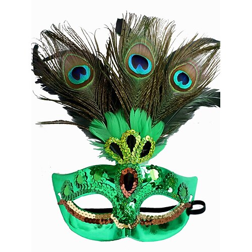 Maschera in maschera veneziana con piume di pavone per donne - accessorio da costume verde con paillettes per feste di Carnevale Mardi Gras cosplay ed eventi eleganti in maschera