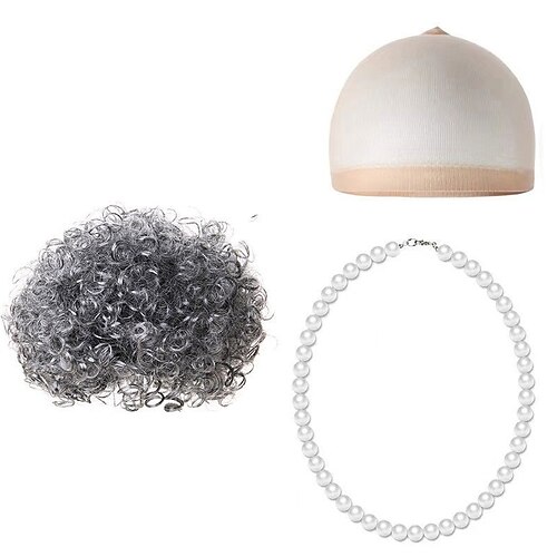 Kit di accessori per costume da vecchia signora: parrucca con chignon nero, cuffia per parrucca, collana di perle, perfetto per cosplay da nonna per donne e ragazze, costume da 100 giorni di scuola