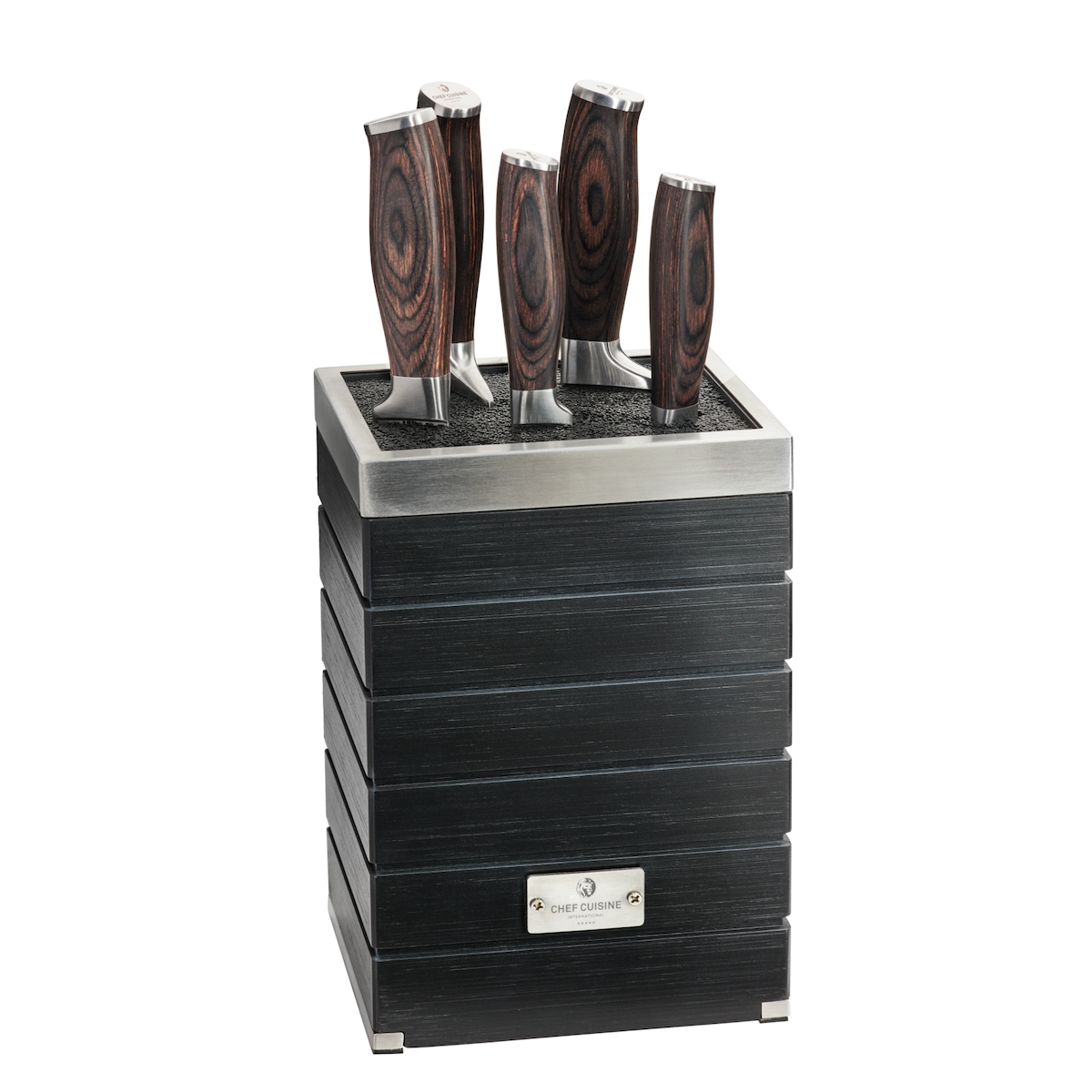CHEF CUISINE Messerset, 5-tlg., inklusive Messerblock, Rostfreier Klingenstahl, Geschmiedet, Handgeschliffen & poliert, Ergonomischer Griff