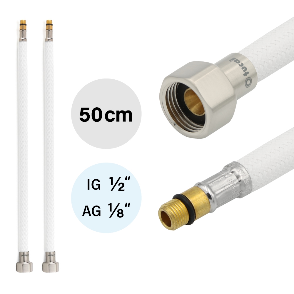 2 x Flexschlauch DN8 IG 1/2`-M10x1 500mm Weiss Gebürsteter Stahl