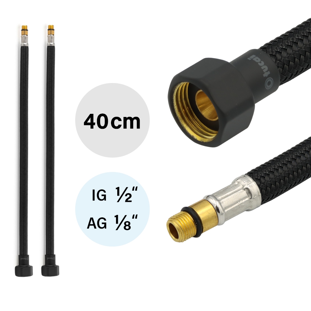 2x Flexschlauch DN8 IG 1/2`-M10x1 Schwarz & Schwarz Matt 400 mm