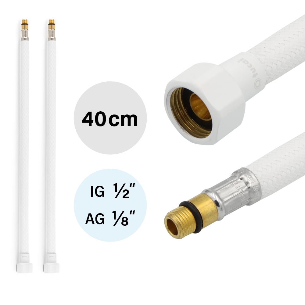2x Flexschlauch DN8 IG 1/2`-M10x1 Weiss & Weiss Matt 400 mm