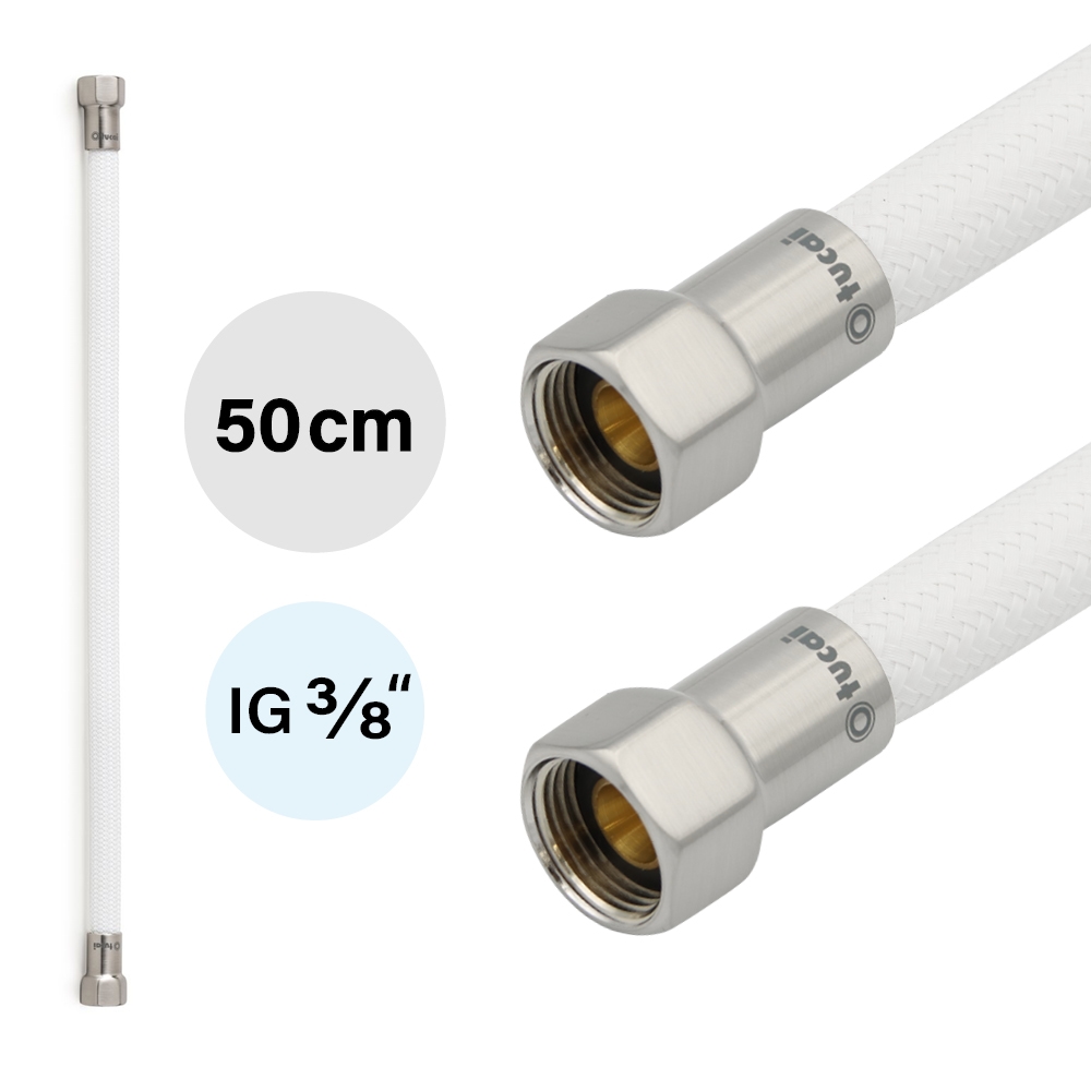 Flexschlauch DN8 IG/IG 3/8` Weiss Gebürsteter Stahl 500mm