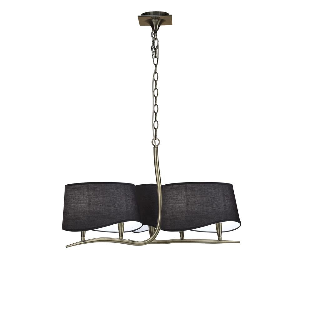 Ninette Pendant 3 Arm 6 Light E14 With Black Shades Antique Brass Mantra