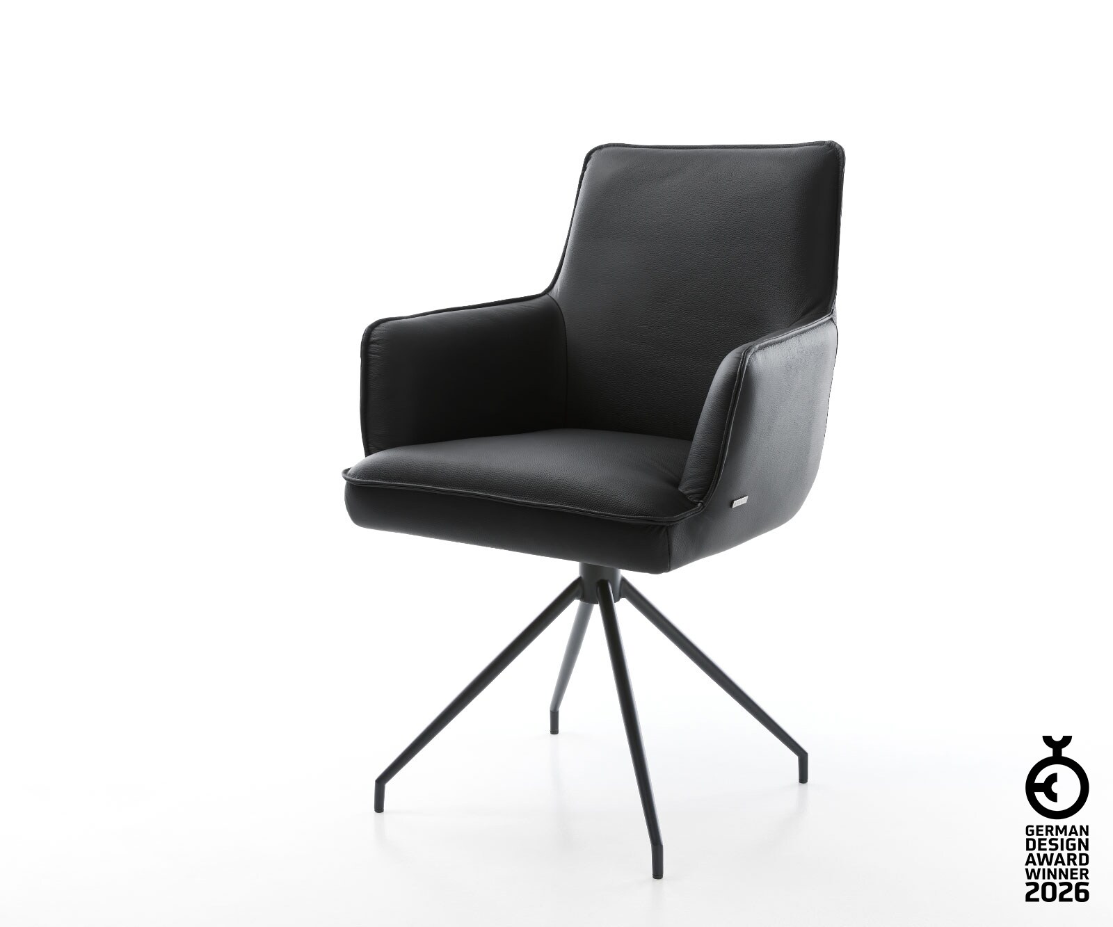 Drehstuhl Heira-Flex mit Armlehnen Echt-Leder Schwarz Kreuzgestell konisch Schwarz 180° drehbar Taschenfederkern