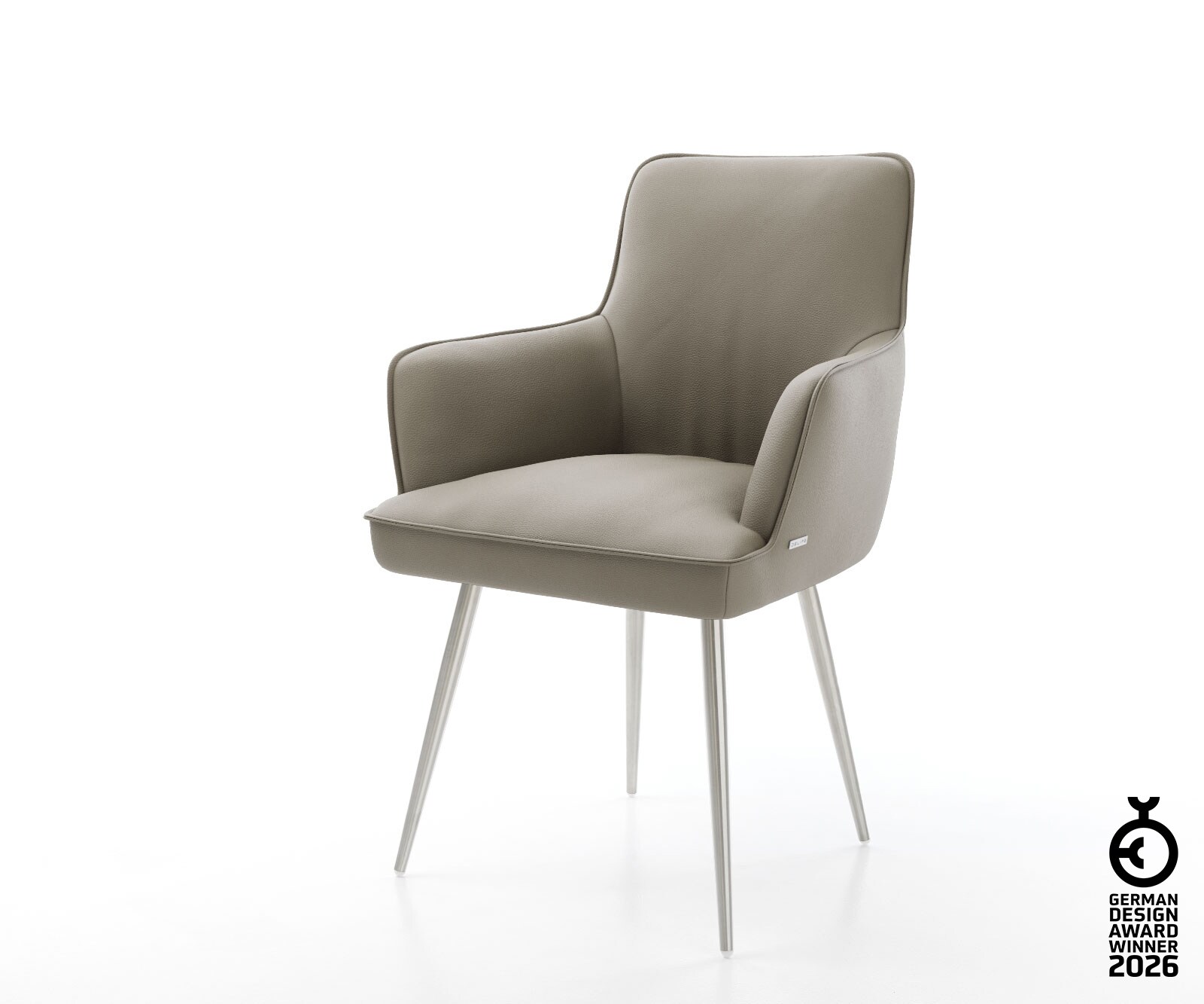 Esszimmerstuhl Heira-Flex mit Armlehnen Echt-Leder Schlamm 4-Fuß konisch Edelstahl Taschenfederkern