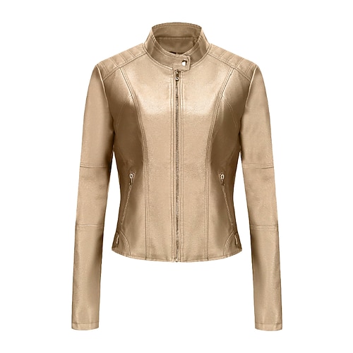 Per donna Giacca in Ecopelle Confortevole Cerniera Tasca Casual Semplice All'aperto Vacanza Abbigliamento quotidiano Uscire Regolare Collo alla coreana Vestibilità regolare Manica Lunga Capispalla