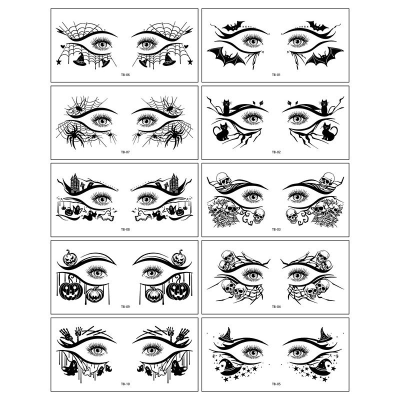 Halloween Corner Eye Makeup Tattoos – 10pcs Premium Temporary Face Tattoos for Party Holiday Decorations
